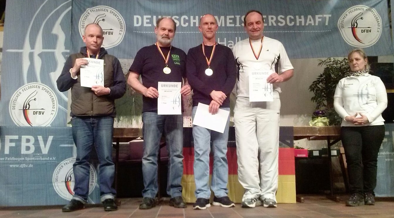 Bereits im März glänzte Frank Bölting bei den Deutschen Hallenmeisterschaften, ausgerichtet vom Deutschen Feldbogenverband (DFBV) in Marl, mit einem hervorragenden zweiten Platz. Peter Renzel erzielte hier bei seiner ersten Teilnahme den vierten Rang.