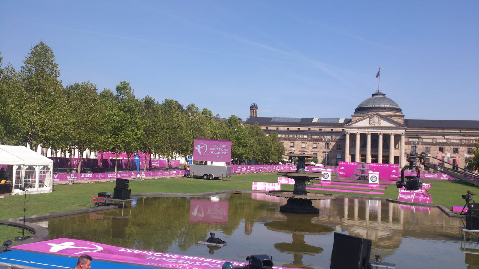 Am vergangenen Wochenende fanden die deutschen Meisterschaften im Freien statt. Gastgeber war in diesem Jahr der Verein Bogensport Bietigheim e.V., die Finals wurden auf dem Bowling Green am Kurhaus, also direkt im Herzen von Wiesbaden, ausgetragen.