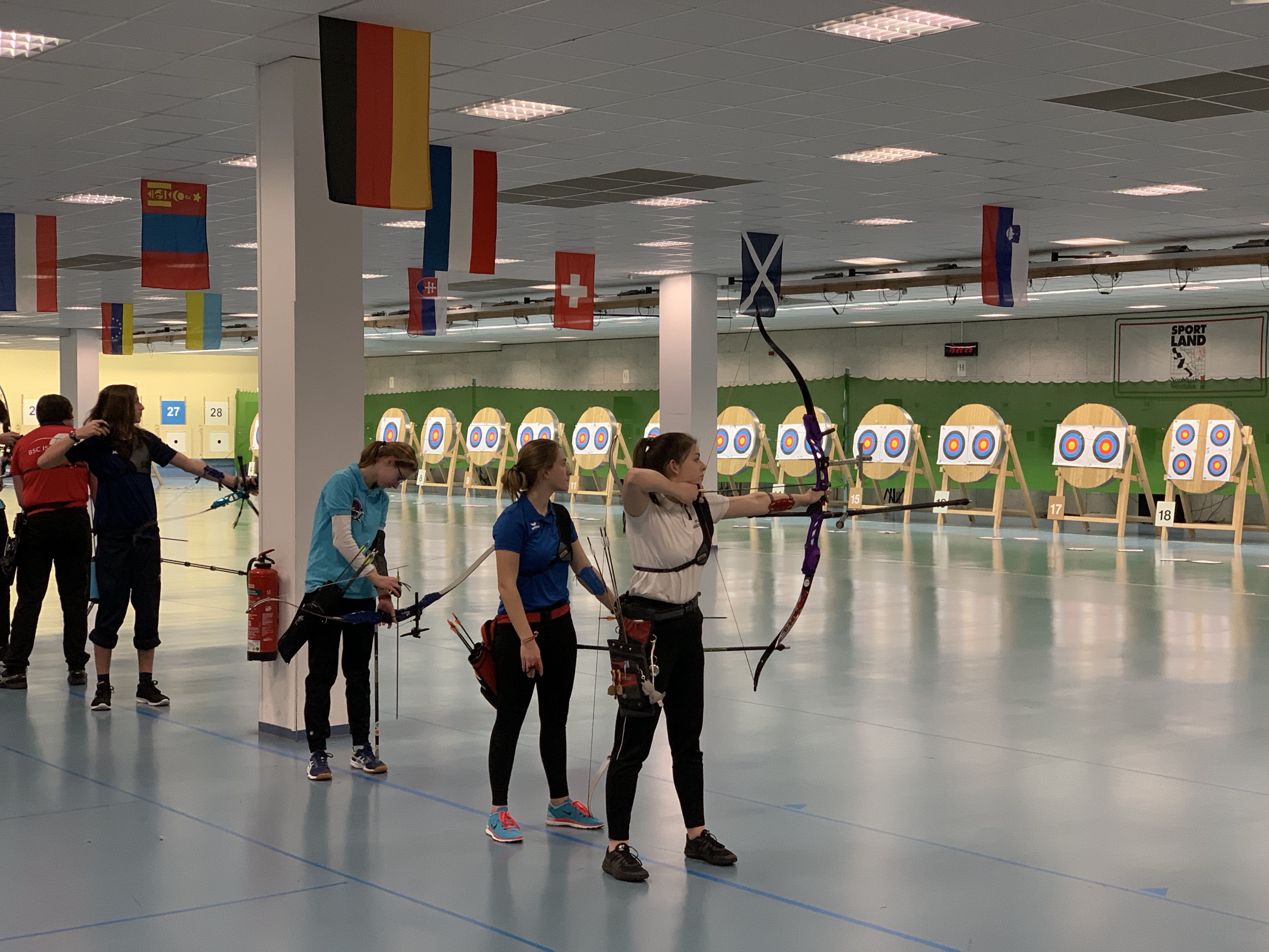 Am vergangenen Wochenende fanden die diesjährigen Landesmeisterschaften des Westfälischen Schützenbundes im Landesleistungsstützpunkt in Dortmund statt. Das Meisterschaftsturnier dient als Qualifikationsentscheid für die anstehenden deutschen Meisterschaften im Bogenschießen. Bereits am Freitagabend konnte sich Pia Wolbring in der Jugendklasse souverän durchsetzen und errang mit 534 Ringen den Landesmeisterinnentitel. Katharina Klose wurde Fünfte (460 Ringe). Bei den Damen konnte dann am Sonntag Jana Krasenbrink ihre starke Form unter Beweis stellen: mit 548 Ringen platzierte sie sich in der Hauptrunde auf Platz zwei. Bei den Erwachsenen gibt es allerdings noch ein anschließendes Schießen im K.O.-Modus. Hier musste sie sich im kleinen Finale um Bronze denkbar knapp Annett Schüttler geschlagen geben (6:5). Bei den Herren landete Frank Joormann solide auf Platz 10 (547 Ringe). Er verpasste zwar die Finals, kann sich aber noch Hoffnungen auf einen Startplatz bei der deutschen Meisterschaft machen: die Qualifikationszahlen werden nämlich erst nach Abschluss aller Landesmeisterschaften ermittelt. In der Herren-Blankbogen Masterklasse verpasste Ralf Kemink das Treppchen um nur einen Ring und erreichte Rang 4.