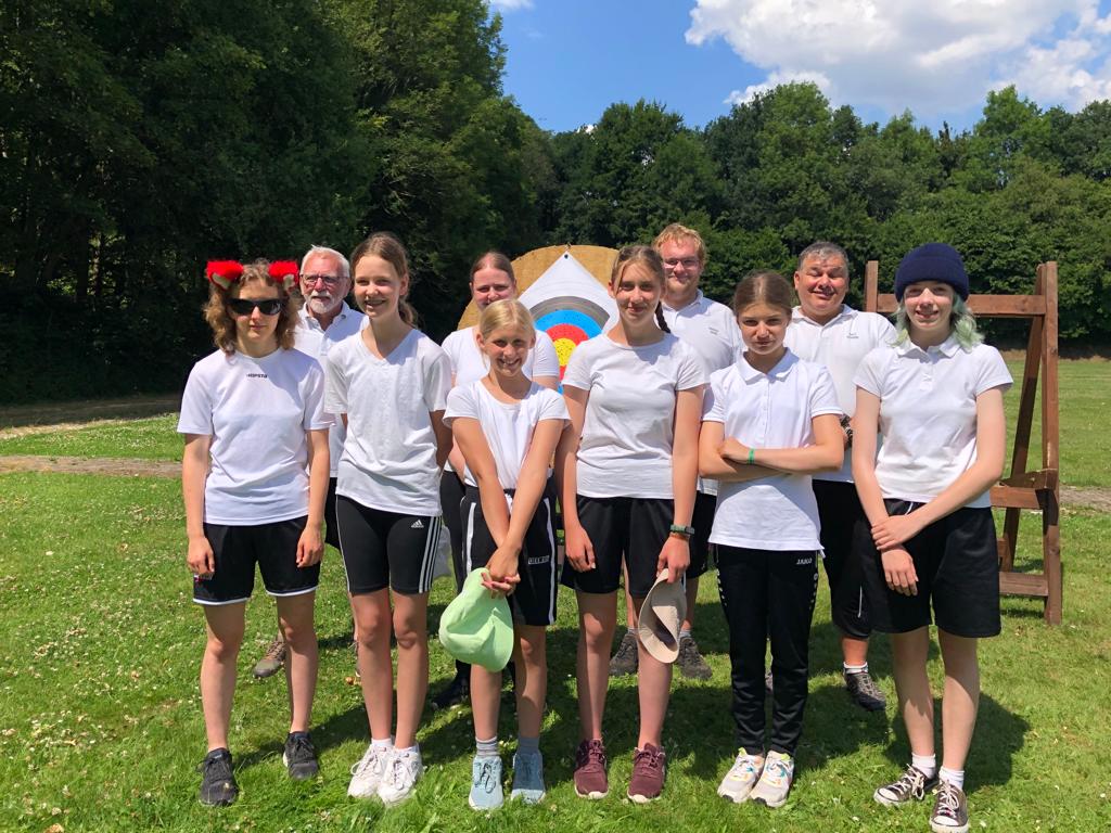 Am heutigen Sonntag fanden bei sonnigem Sommerwetter die Landesmeisterschaften des Westfälischen Schützenbundes im Freien in Bochum statt. Dabei ging es für die 10 Jugend-, Schüler-  und Blankbogenschützen und -schützinnen des Bocholter Bogenschützen Clubs um Medaillen. Besonders hervorzuheben sind die Leistungen von Isabel Schaffeldt und Leonie Kleinwege in der Klasse Recurve Schülerinnen A. Während sich Isabel Schaffeldt mit ihrer sauberen Schießtechnik und 545 Ringen Platz 2 und somit die Silbermedaille sicherte, überraschte Leonie Kleinwege mit einer Leistungssteigerung im zweiten Durchgang. Sie konnte damit 2 Plätze gut machen, auf den 3.Platz vorrücken und Bronze holen. Den 5. Platz belegte Emma Krieg mit 409 Ringen. Für Mayinti Storck reichte es diesmal mit 329 Ringen nur für den 6 Platz. Mit der Mannschaft holten Isabel Schaffeldt, Leonie Kleinwege und Mayinti Storck in der Klasse Recurve Schülerinnen A mit 1326 Ringen Gold.