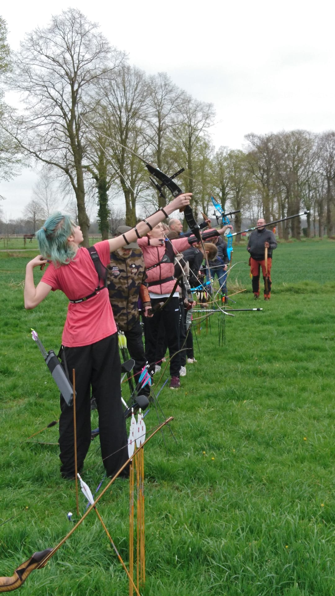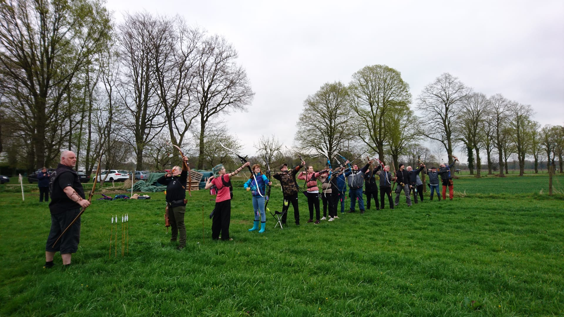 Hier konnten die Teilnehmerinnen und Teilnehmer ihr Können unter Beweis stellen und sich im Wettkampf auf große Distanz messen. Zugelassen waren Bögen aller Bauart. Je näher man den Pfeil am Ziel, einer Fahne, der sogenannten Clout, platzieren kann, desto mehr Punkte gibt es. Geschossen wurde auf einer Distanz von 50 m, 100 m und 150 m.